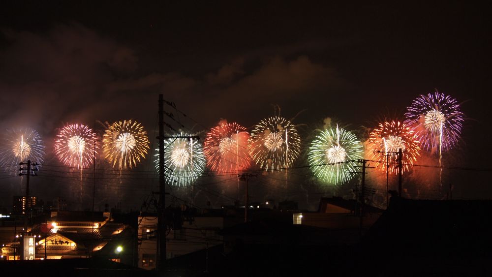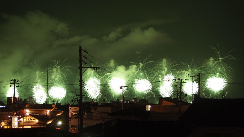 街並みや電線越しに観る花火もまた、おつなもので。